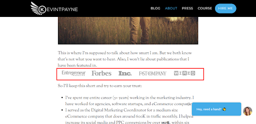 That’s not all, this is also a good opportunity to build credibility and have your readers instil trust in you. You can do that by showcasing client testimonials, your published guest posts on authoritative websites and media coverage such as interviews, etc.